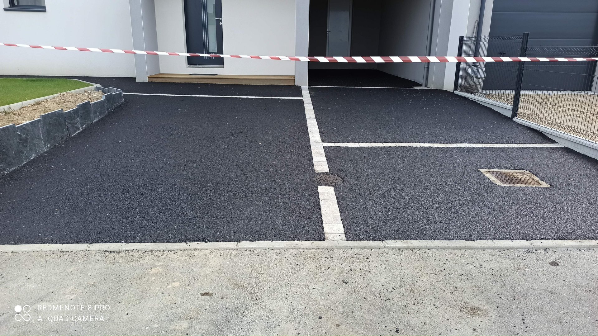Réalisation d'une cour en enrobé, clôture et aménagement du jardin.